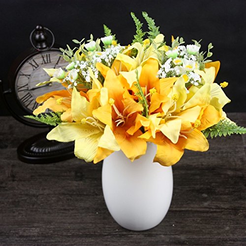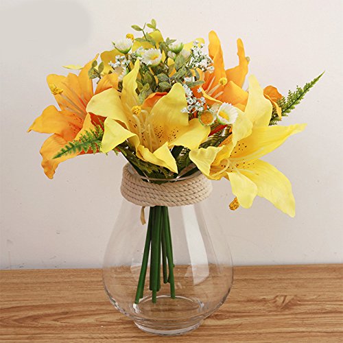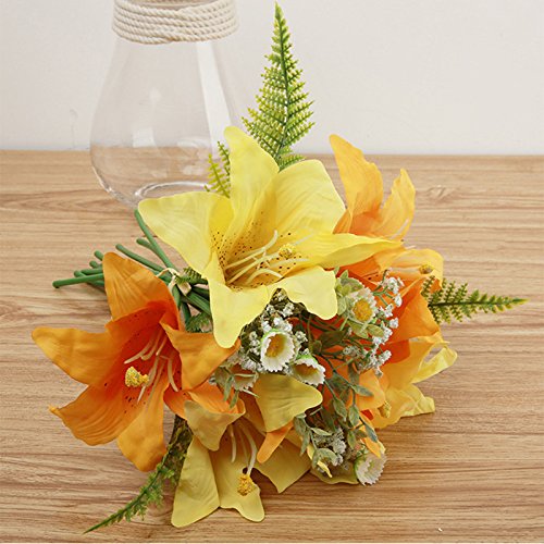 造花 インテリア造花 花束 枯れない花 ゆり花束 百合造花 1束11本 上質なチューリップ シルク製 本物そっくり アートフラワー 造花 飾り物 小物 リビング 玄関 ダイニング プレゼント ギフト ローマンチック 結婚式 ホーム 喫茶店 飾りフラワー (オレンジ)