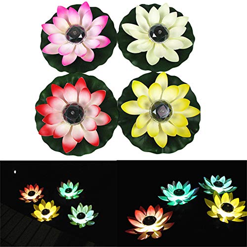 LED蓮花 ロータスライト フローティング LEDソーラーライト 太陽能充電式 ソーラーパネル付き 願をかけるライト 祈り 点灯 水中ライト 浮かぶ プール装飾ライト 4色花びら選択可能 (D)