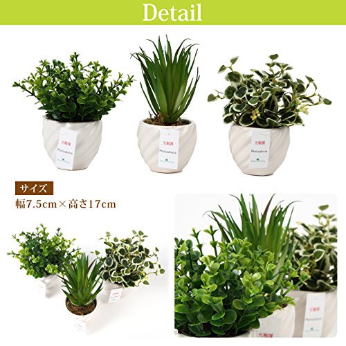 fleurmelody 光触媒 人工観葉植物 造花 3個セット 多肉植物 ユーカリ2種 Ph-03-AB
