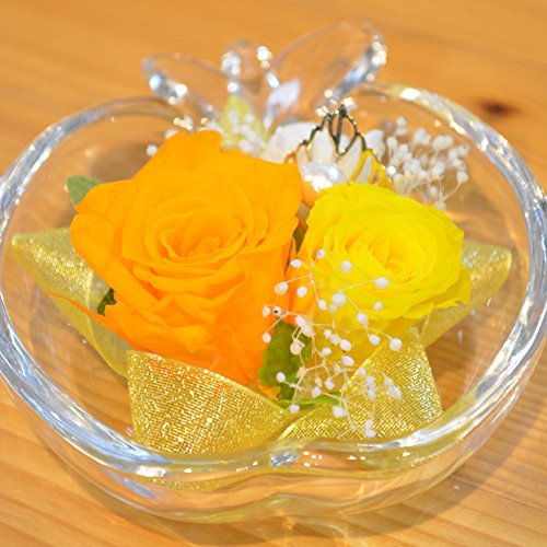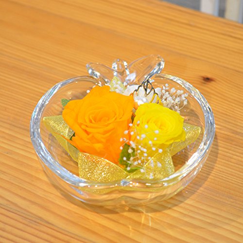 [florence du]アップル型ガラス陶器 2色バラアレンジメント イエロー×オレンジ クリアケース付 結婚記念日 誕生日 祝い フラワーギフト 花ギフト プレゼント 敬老の日
