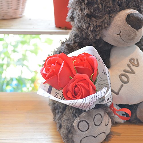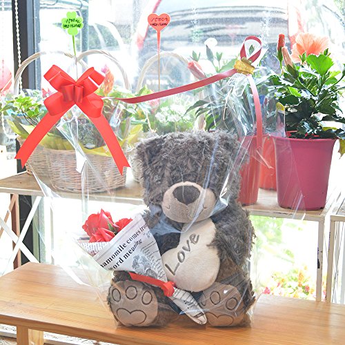 [florence du] くまさんぬいぐるみ&ソープフラワーミニ花束(レッド)セット