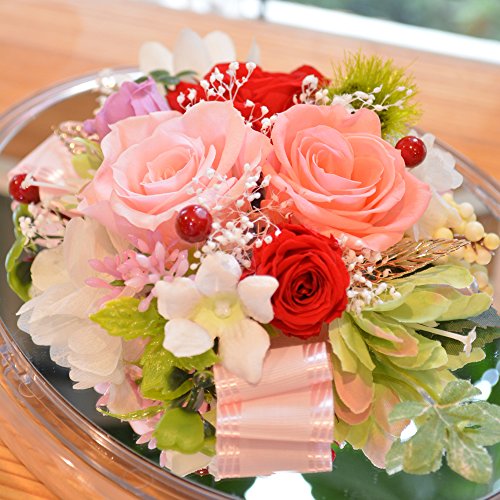 - ■お花について■こちらの商品はプリザーブドフラワーになります。直射日光、高温多湿以外の場所で飾っていただくことで長期にわたりお花をお楽しみいただけます。