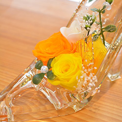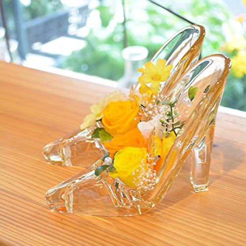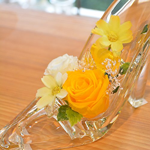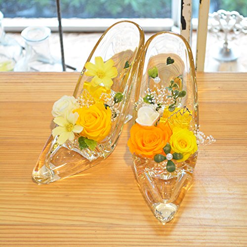 [florence du]プリザーブドフラワー プリンセスハイヒール 2足セット イエロー クリアケース付 ガラスの靴 婚約 プロポーズ 結婚祝い 結婚記念日