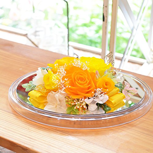 [florence du]プリザーブドフラワー 飾り方2WAYクリアケースドームアレンジメント イエロー&オレンジ 花 ギフト フラワーギフト 退院祝い 退職祝い 誕生日 プレゼント