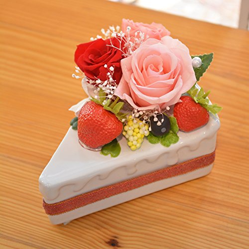 [florence du]プリザーブドフラワー 三角フラワーケーキ 「ショートケーキ」 ケーキ箱風クリアーケース付 花 ギフト フラワーギフト 退院祝い 退職祝い 誕生日 プレゼント