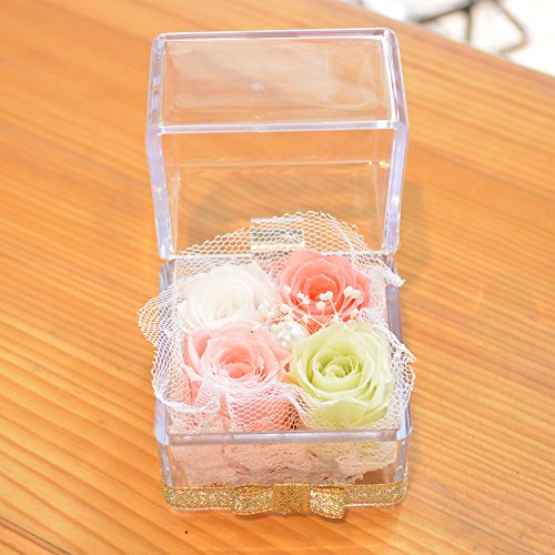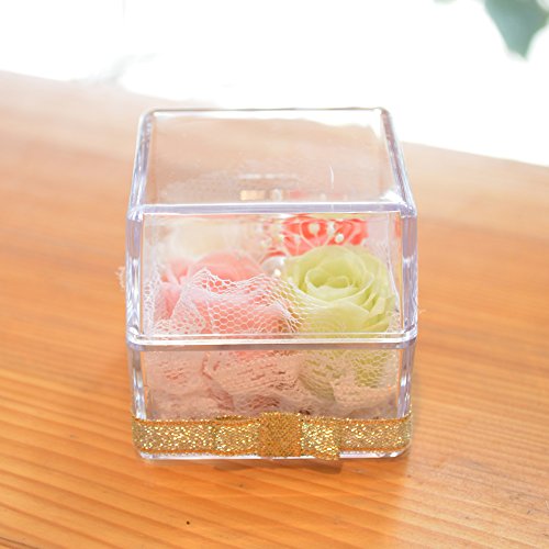 [florence du]プリザーブドフラワー 4色ミニバラキューブボックスアレンジメント (ピンクミックス)