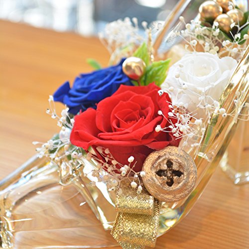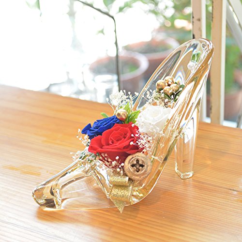 [florence du]プリザーブドフラワー 3輪バラハイヒールアレンジメント レッド&ブルー ガラスの靴 花 ギフト フラワーギフト 結婚 誕生日 プレゼント 記念日 お祝い クリスマス プレゼント