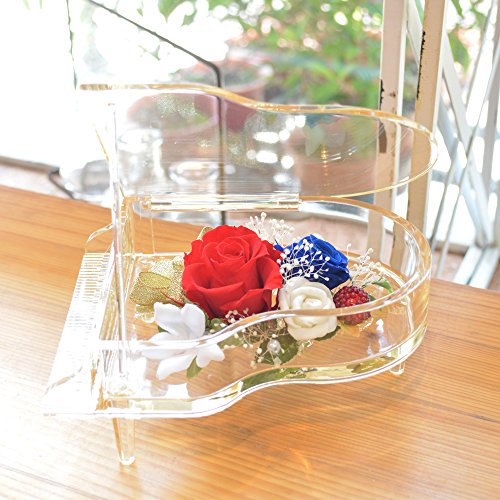 グランドピアノの形をしたアクリルフレームに大小2色のバラ(プリザーブドフラワー)でアレンジいたしました。誕生日祝いの贈り物、結婚祝いの贈り物におすすめです。ご自宅のインテリアとしてもおすすめの商品です。