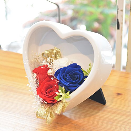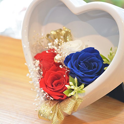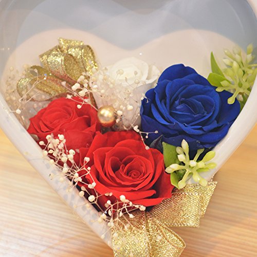 [florence du]プリザーブドフラワー ブルー、赤バラ ハートスタンドアレンジメント 専用クリアケース付 結婚記念日 誕生日 祝い フラワーギフト 花ギフト プレゼント クリスマス プレゼント