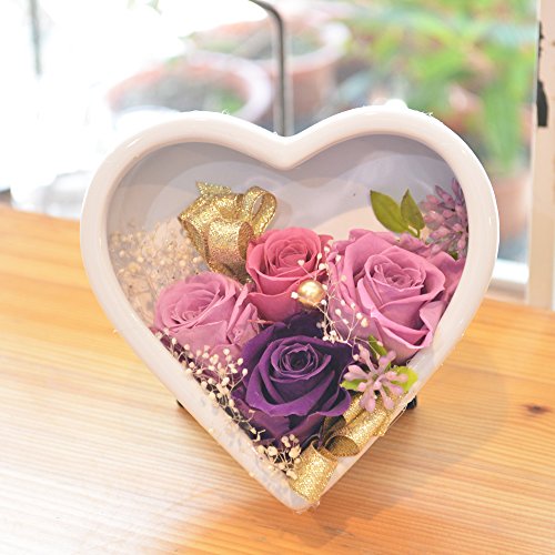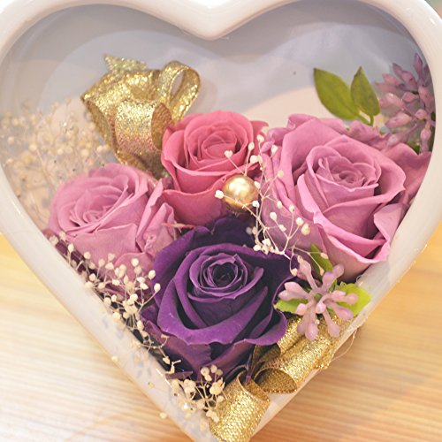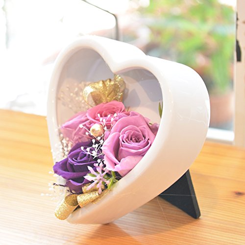 [florence du]プリザーブドフラワー 紫バラ ハートスタンドアレンジメント 専用クリアケース付 結婚記念日 誕生日 祝い フラワーギフト 花ギフト プレゼント 敬老の日