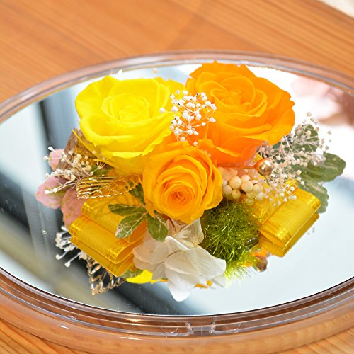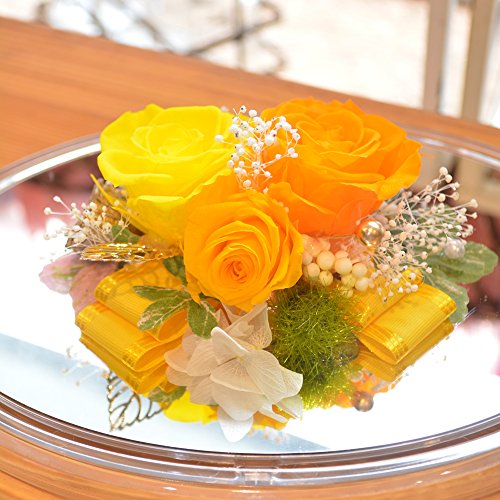 [florence du]プリザーブドフラワー 3輪バラ2WAYドームアレンジメント カラー:オレンジ&イエロー 結婚記念日 誕生日 祝い フラワーギフト 花ギフト プレゼント 出産祝い 結婚祝い