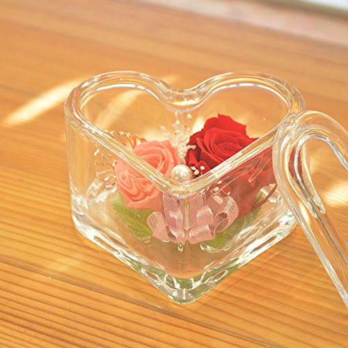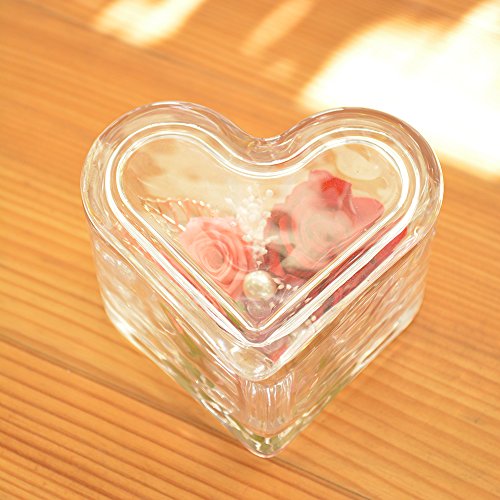 - ■使用花材■プリザーブドフラワー(バラ)、アジサイ、ハート型ガラス陶器