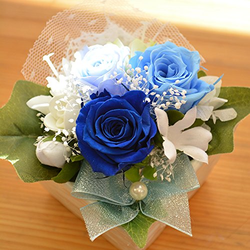 [florence du]プリザーブドフラワー ブルー 3輪バラアレンジメント フラワーギフト プレゼント 花ギフト 誕生日祝い お祝い ブリザードフラワー
