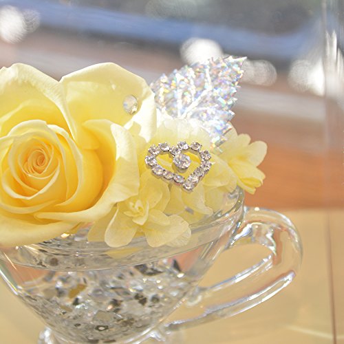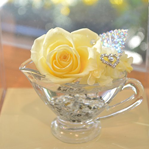- ■商品説明■こちらの商品お花に色落ち、ムラがございますので【わけあり品】とさせていただいております。ティーカップ風陶器に大きなバラ1輪とスワロフスキーラインストーンを使用したアレンジメントです。
