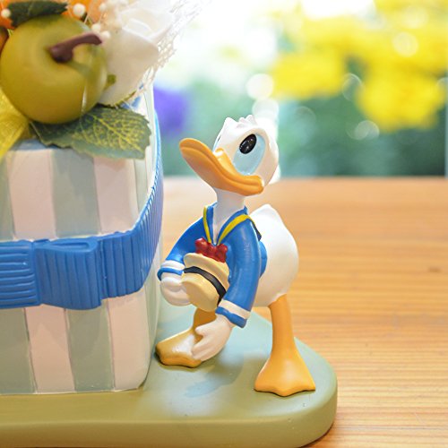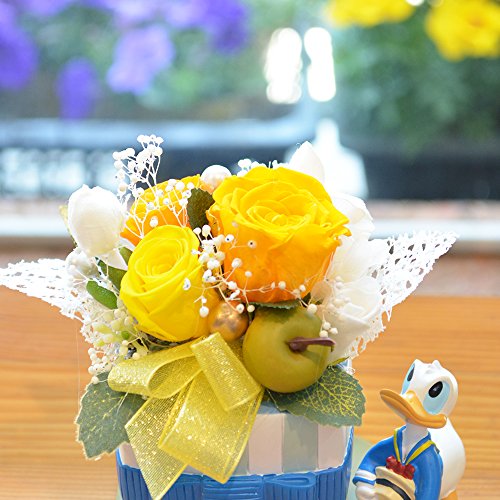 [florence du]プリザーブドフラワー ディズニー ドナルド陶器 3輪バラアレンジメント クリアケース付