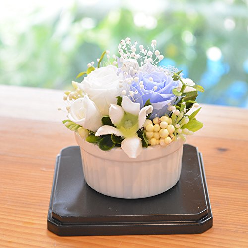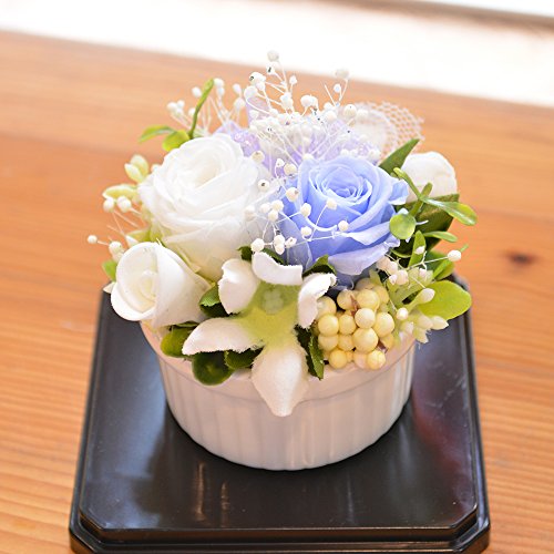 [florence du]プリザーブドフラワー 器おまかせ お供えミニアレンジメント (ブルー)