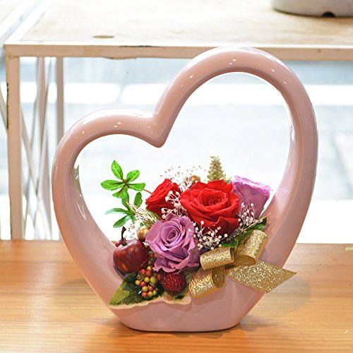 - ■使用花材■プリザーブドフラワー(バラ4輪)、かすみ草、ハート型陶器
