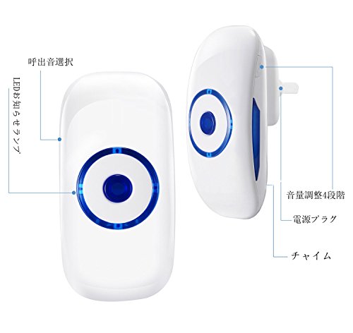 - 「面倒な配線不要で取り付け簡単」無線タイプで配線不要、受信機は居間や台所などコンセントがあればどこにでも簡易に設置できます。送信機は電池式なので付属したネジで壁面に固定、机や棚において使用もできます。小型ですので持ち歩きも可能