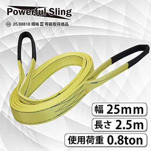 パワフルスリングベルト JISⅢ等級 使用荷重800kg 幅25mm 長さ2.5m