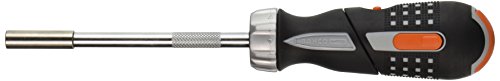 ●軸長(mm):125●全長(mm):255●ビスや、ボルトの早回し。●グリップを回転させるとピストル型になり締め付けトルクをアップできます。●グリップ内に6種類のビットを格納できるビットホルダーを内蔵しています。●作業性の良いラチェット式グリップです。