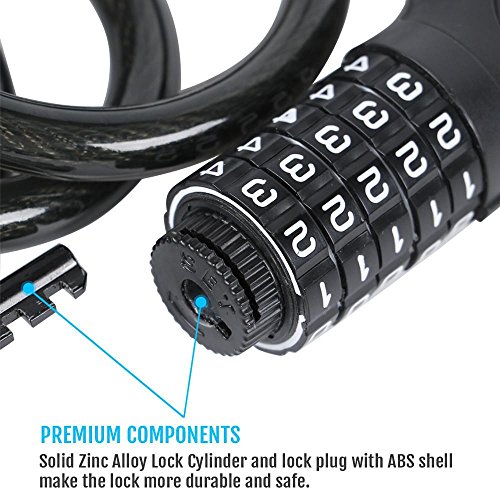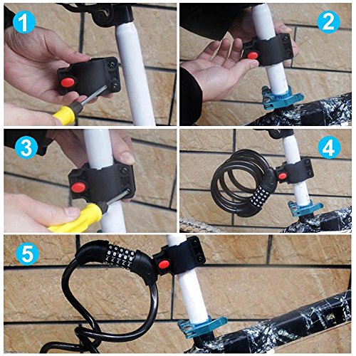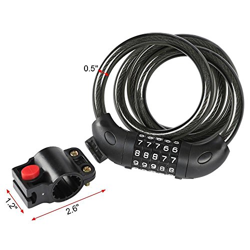 go2buy 42 "バイクケーブルロック5桁組み合わせロックセルフ巻き自転車コード化ロックwithマウントブラケット