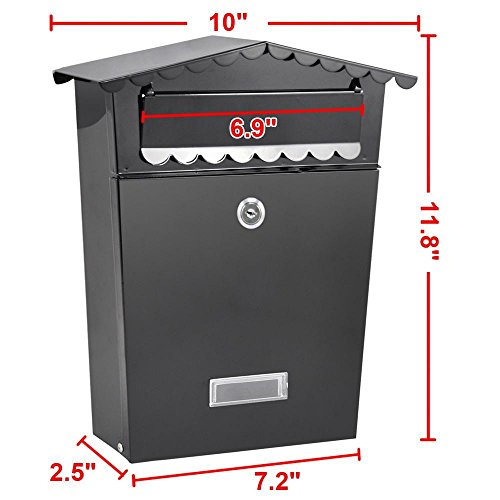 go2buy壁マウントメールボックスW /外側ドアで、Lockable 2キー付属ブラック12 x 10 x 2.6 "