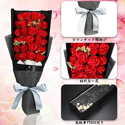 ソープフラワー バラ 花束 枯れない花 ギフト 誕生日 結婚祝い 結婚記念日 バレンタインデー 昇進 転居 新築お祝い 還暦 母の日 プレゼント フラワーボックス付き 33本 レッド