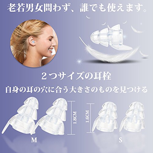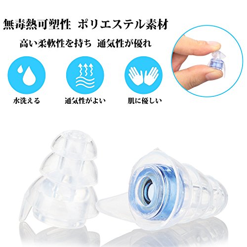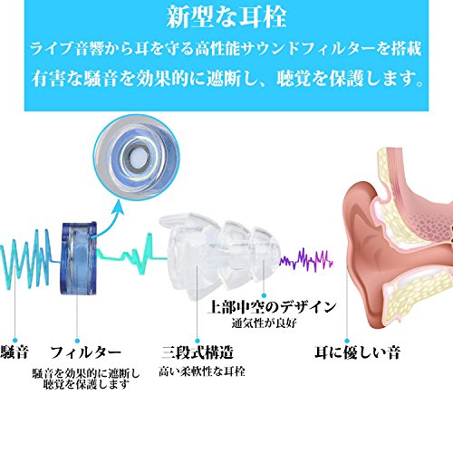 - 【2018新型ライブ用耳栓、騒音遮断】高性能サウンドフィルターと三層構造した防音プラグを組み合わせた耳栓は騒音を耳に安全なレベルまで減らし、平均的に約23DB低減できて、不要な周波数を正確に減衰し、必要な音だけを保留し、聴覚保護の目的を達成することができます。