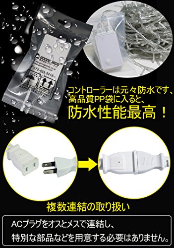 - 本商品はLED部分が防水加工で、コントローラー部分が防滴加工です.プラグ部分は防水加工ではありません。※屋外使用の際には、接続部分に防水テープなどで処理してください。