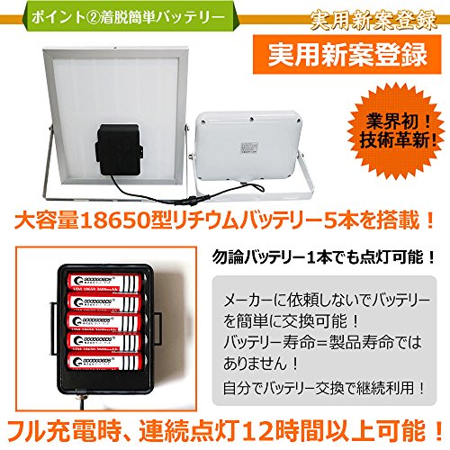 - 充電時間:約7~8時間 点灯時間 :連続12時間以上 バッテリー容量:18000mAh(18650型充電池LDC-361A*5本*3600mAh)