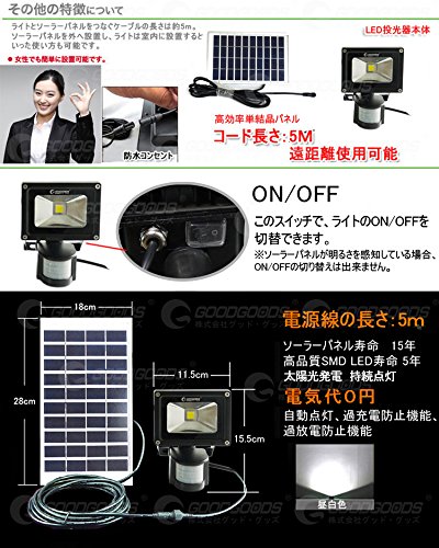 GOODGOODS LED ガーデンライト ソーラー 屋外 防水 5W 充電式 センサーライト 人感センサー 光センサー付き 【一年保証】 T-GY5W