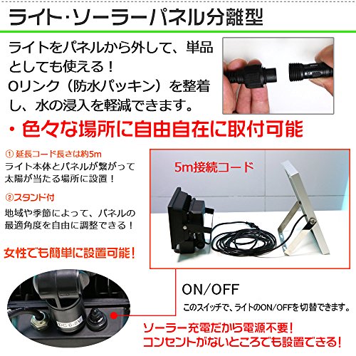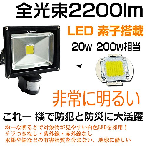 - 人や物の動きを感知する人感+光感センサー付き ソーラー式高輝度センサーLED投光器です!非常用 停電、災害時にも大活躍!