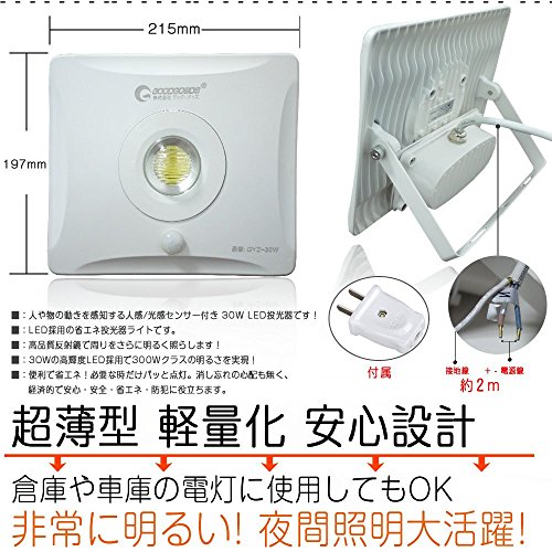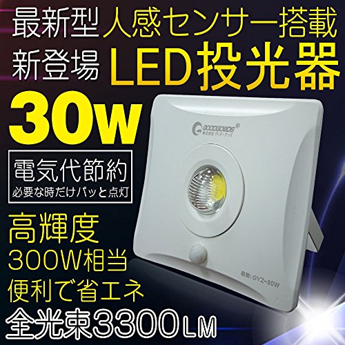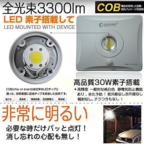 GOODGOODS COB LED 防犯ライト 30W 300W相当 センサーライト 屋外照明 防水 人感センサー 光センサー搭載【一年保証】 GYZ-30W