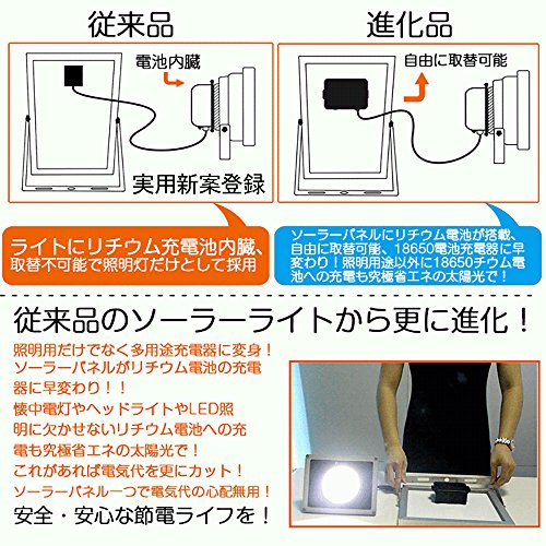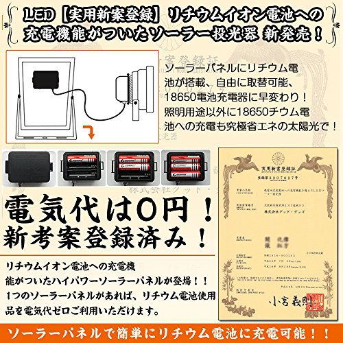 - 【JANコード4571461861036取得済】電池交換対応式・光感センサー付き・ソーラー充電式高輝度センサーLED投光器です!18650電池充電に対応