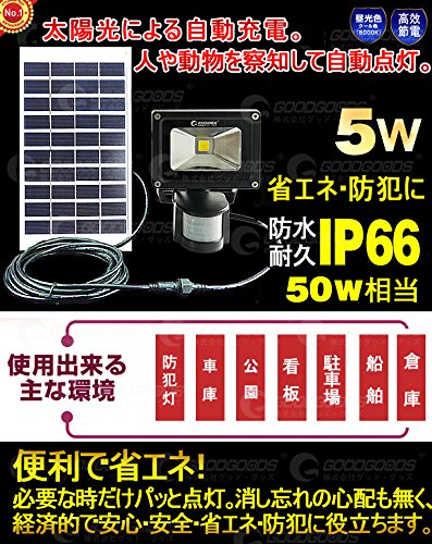GOODGOODS LED ガーデンライト ソーラー 屋外 防水 5W 充電式 センサーライト 人感センサー 光センサー付き 【一年保証】 T-GY5W