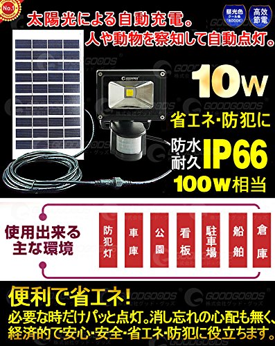 GOODGOODS LED 人感 センサー ライト 10W 100W相当 屋外 ソーラーライト 玄関 庭先用 防災 防犯 防水IP66 【一年保証】 T-GY10W