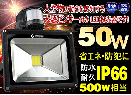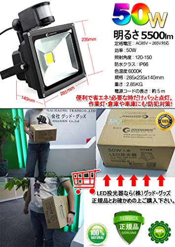 GOODGOODS LED センサーライト 50W 5500LM 人感センサー搭載 センサー 投光器 広角 防水 屋外 防犯灯 玄関灯【一年保証】 GY50W