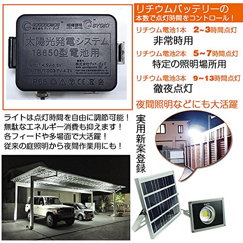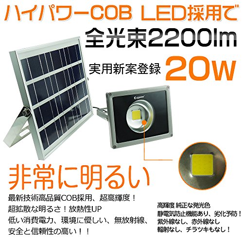 実用新案登録 GOODGOODS COB LED ガーデンライト ソーラー 防水 屋外 20W 充電式 電池交換対応式 光センサー付き 【一年保証】 TYH-20C