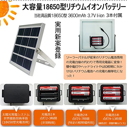 - セット内容:ライト本体 、ソーラーパネル、5m接続コードTYH-5M、18650型充電池(品番:LDC-361A)*3本、日本語取扱説明書 注意:暗くなると自動点灯します。 ソーラーパネルが光を感知すると、点灯出来ません。 本製品は、長時間点灯タイプの為、バッテリー容量が一定以下になると明るさが低減する仕様となります。