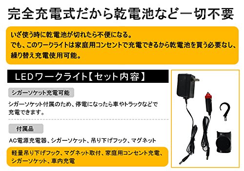 - セット内容:ライト本体 ×1(ストラップ付属) DC12V用のシガーソケット×1 AC100V用アダプター×1 磁石ベース