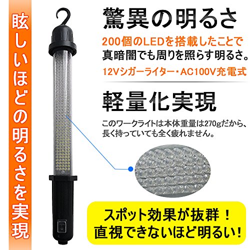 GOODGOODS LED ワークライト 応急ライト 200灯 充電式 広角照射 昼白色 便携式 【保証一年】 WL200