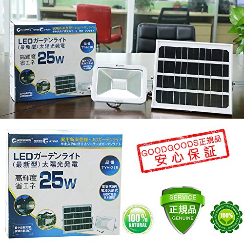 実用新案登録済み GOODGOODS 充電式 LED ガーデンライト 25W 250W相当 電池交換式 ソーラーライト 屋外 防水 ソーラー投光器 防犯灯 【一年保証】 TYH-21R