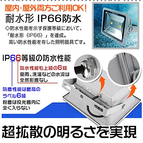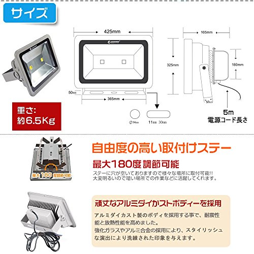 - 防水等級:IP66 角度調節:ステー調節可能 LED発光色 :6000~6500K 昼白色