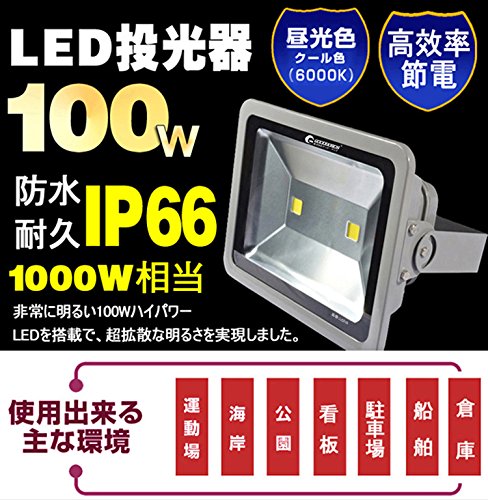 GOODGOODS LED ライト 100W 1000W相当 投光器 作業灯 広角 屋外 室内・屋外照明 ACプラグ付属 防水IP66【一年保証】 LD210