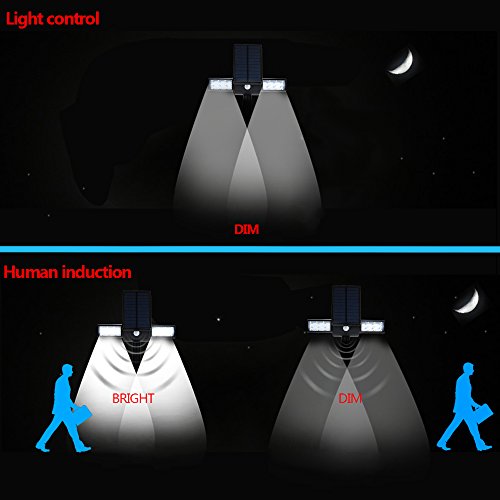- 1.人感センサーモード&常夜灯モードあり:このソーラーライトは2つモードがあります、一つは人感センサーモードで、もう一つが常夜灯モードです。人感センサーモードは、夜暗くなると、ライトはlowモードで自動点灯して、範囲内で人の動きを感じて、ライトはhighモードで点灯しています、15秒後、人が離すと、ライトはlowで点灯しています。常夜灯モードなら、夜暗くなると、ライトは自動的に一夜lowモードで点灯しています。省エネルギーで便利です