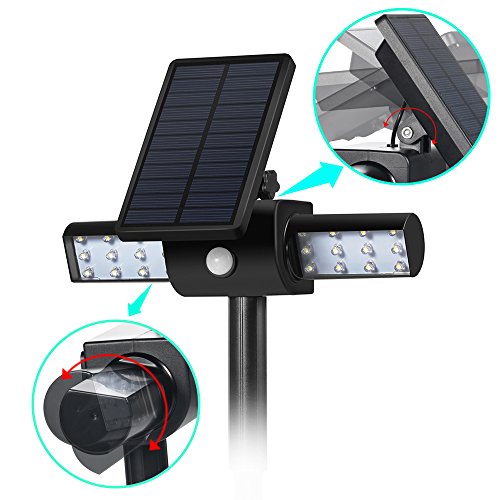 - 5.ソーラーパネル角度調整可能:ソーラーライトとパネルも350度回転でき、灯りを照らしたい方向や、太陽の良く当たる方へ向けられ、十分にソーラー充電できます。