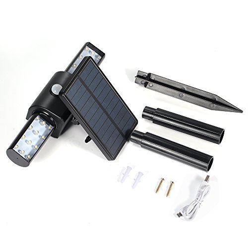 センサーライト ガーデンライト 24LED ソーラーライト 人感センサー IP64防水 USB&ソーラー充電可能 200LM 2モード 350回転 自動点灯/消灯 省エネルギー 玄関先/庭/車道/歩道/芝生/ガーデンなどに対応