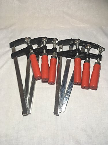 グリップも握りやすく手になじむ形状の F型クランプ6本セットです。 ハンドルがついている部分がスライドし、 どんな幅や厚みの材料もすぐに締めつけられます。