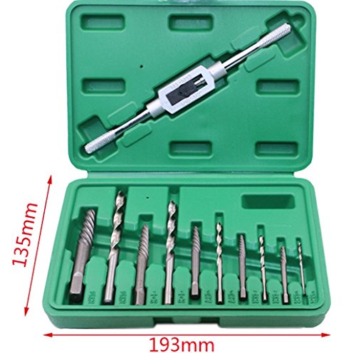 ドリル エキストラクター 折れた ネジ 潰れた ナット 外し 逆タップ 工具 11セット (ライトグリーン)