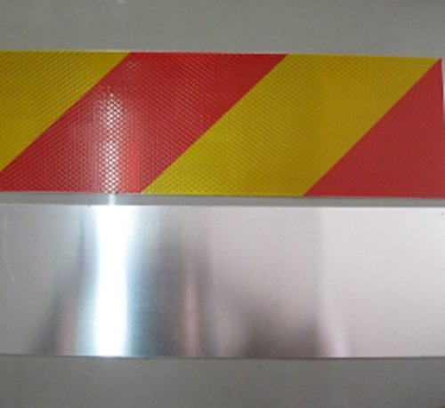 トラック(貨物自動車)・トラクター(牽引車)用の大型後部反射板アルミ板タイプ ・サイズ:135mm×565mm 左右セット2枚。 ・プリズム型高輝度反射シートを使ったゼブラ型(縞型)のステッカー2枚組 ・アルミ板は付属しておらず穴が付いていませんので、穴を開けていただくか、両面テープで貼ってご利用ください。